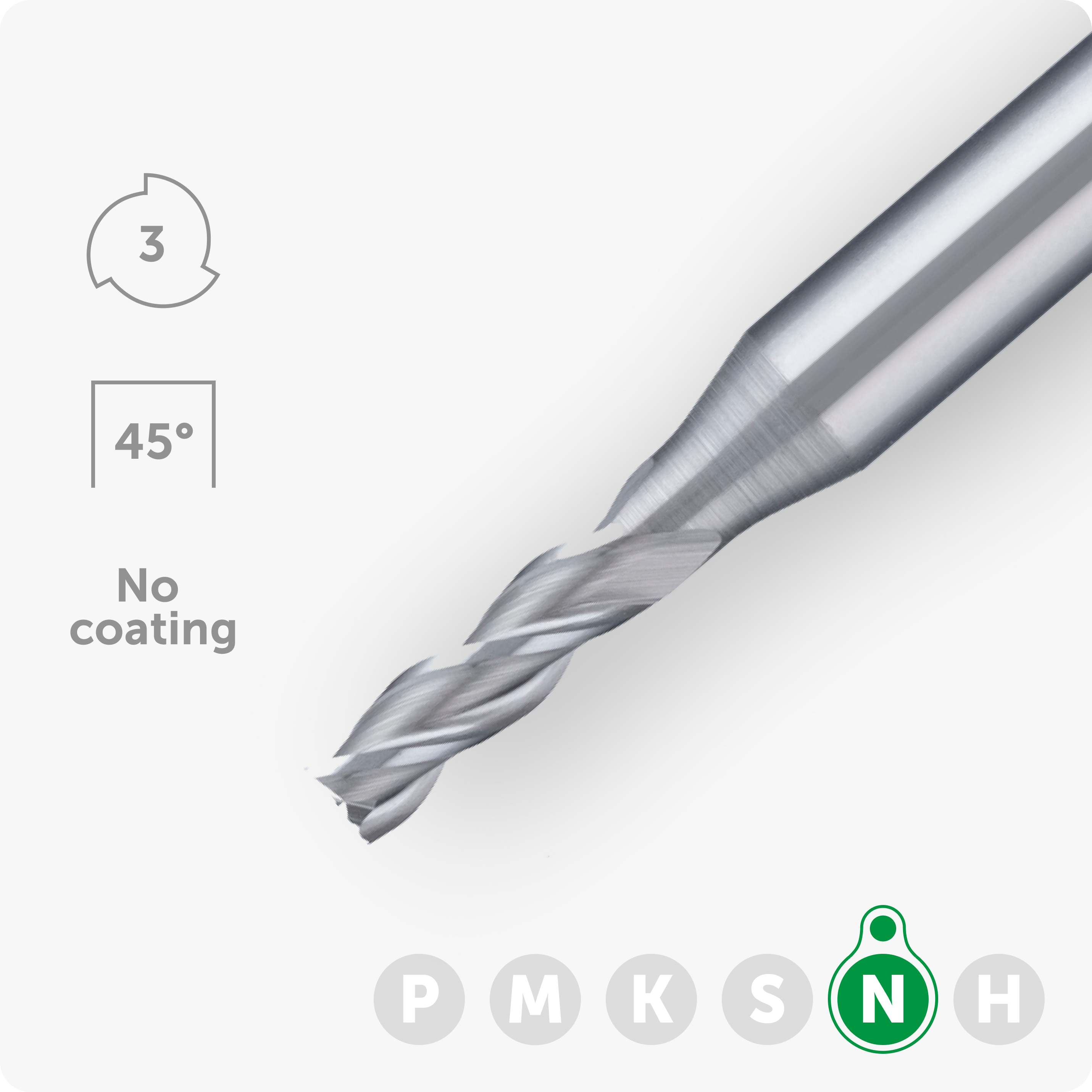 - Твердосплавная фреза без покрытия, без радиуса при вершине