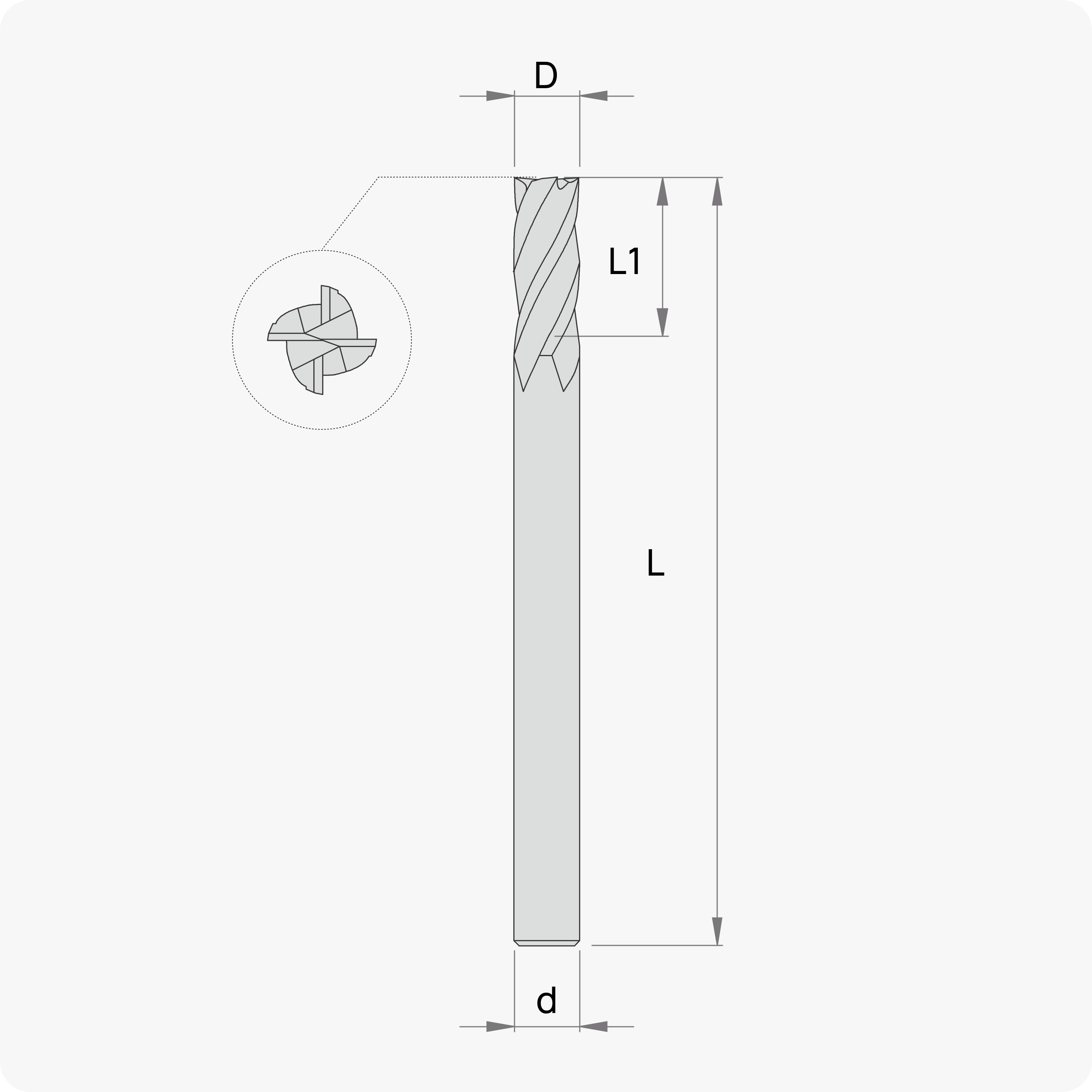 - Твердосплавная фреза с покрытием, без радиуса при вершине