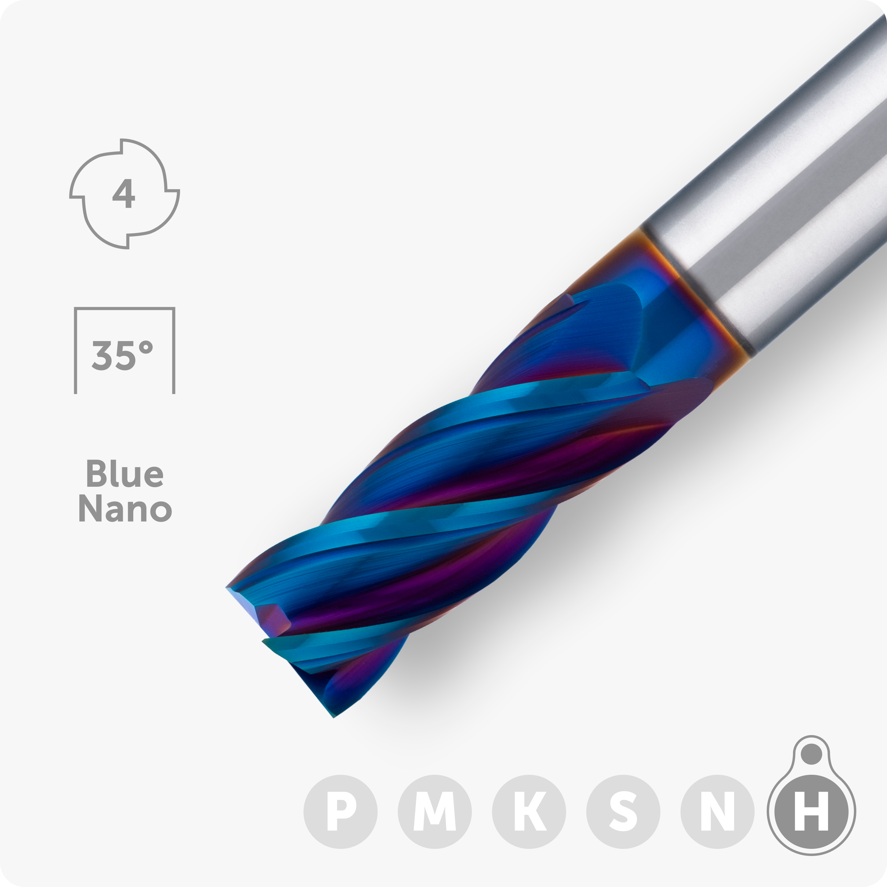 | NRG | 10 | 25 | 10 | 75 | 4 | Blue Nano | 35° | 65 | Закаленная сталь ~65HRC |