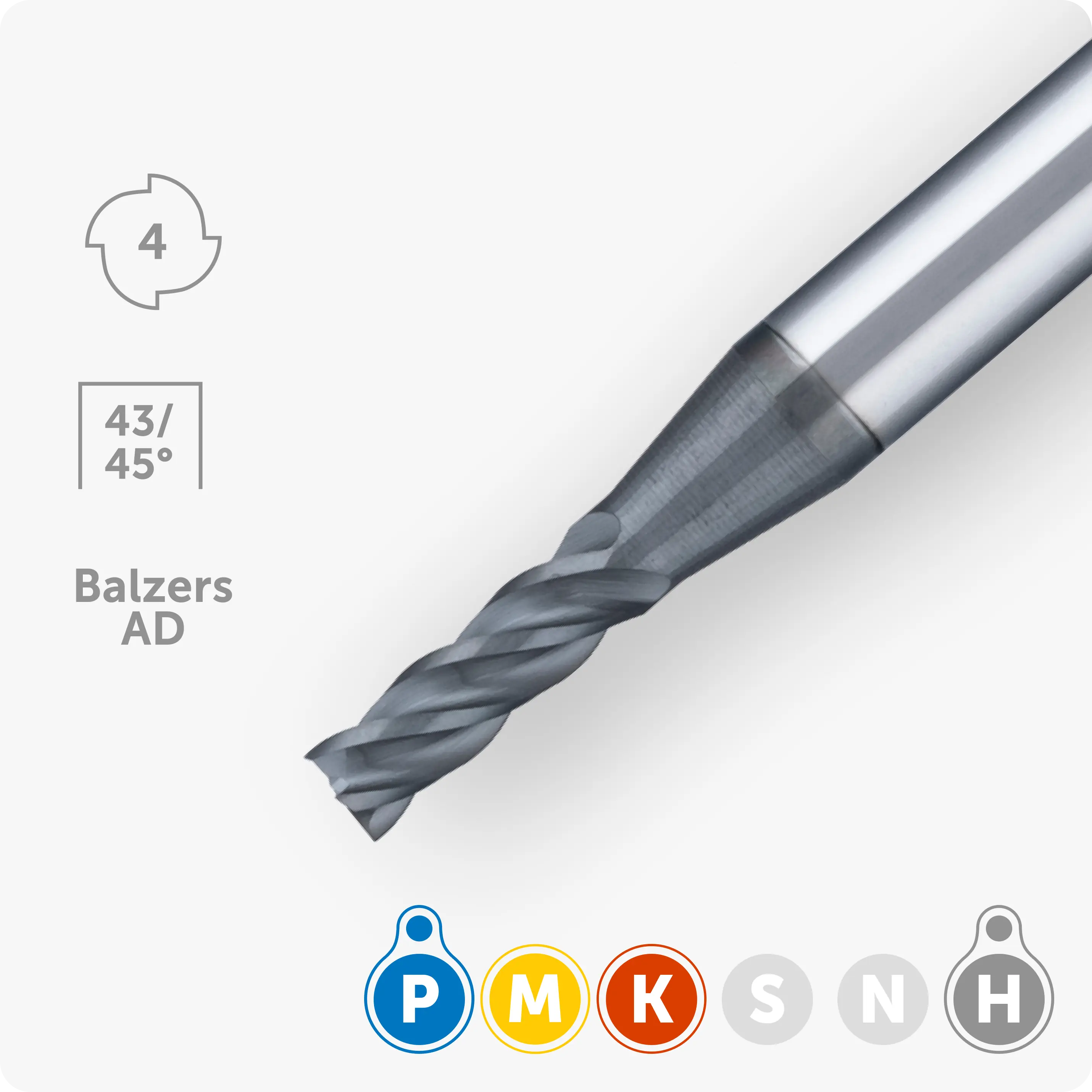 1,5 | 4,5 | 4 | 50 | 4 | Balzers AD | 45° | 60 | Закаленная сталь ~60HRC |