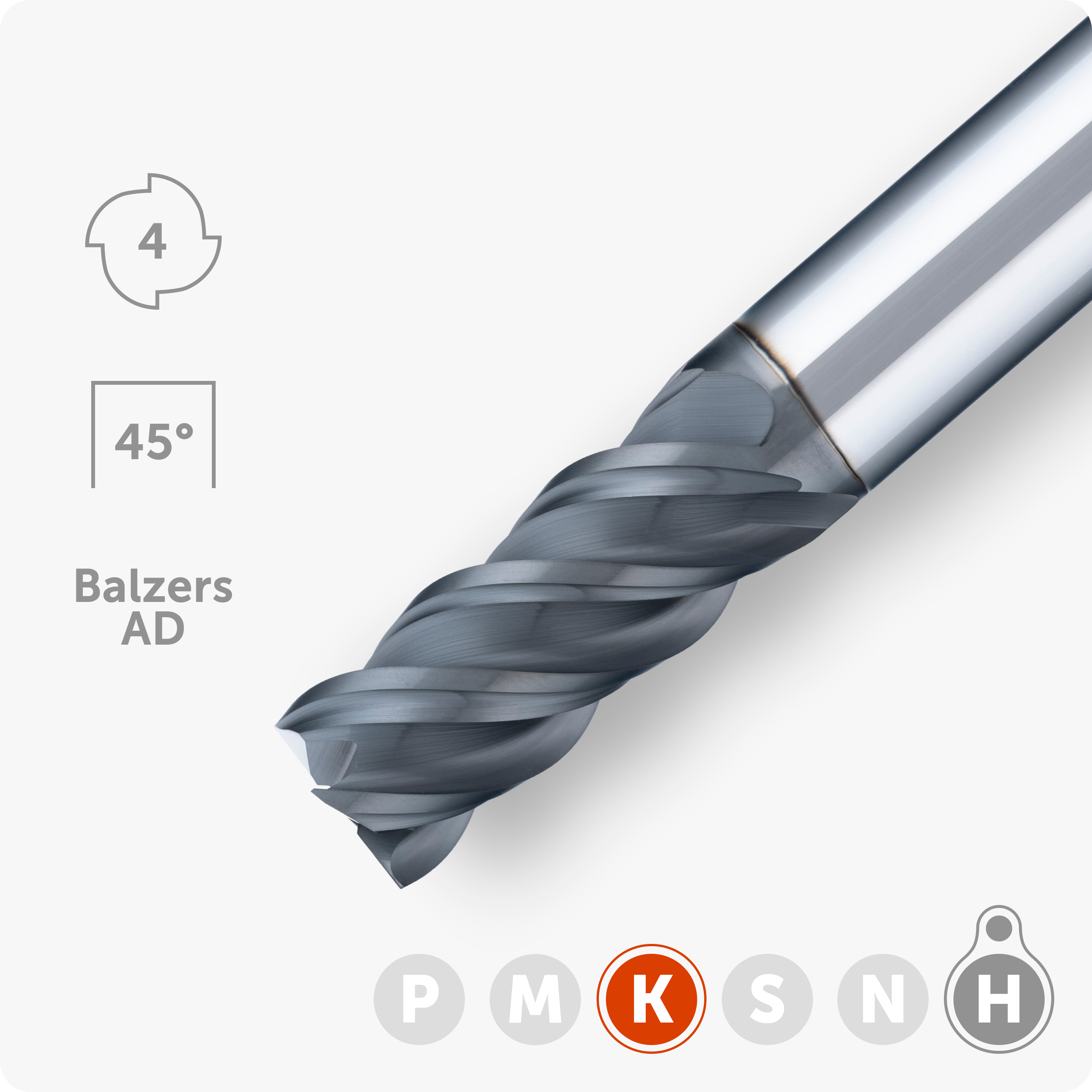 | NRG | 14 | 45 | 14 | 100 | 4 | Balzers AD | 45° | 60 | Закаленная сталь ~60HRC |