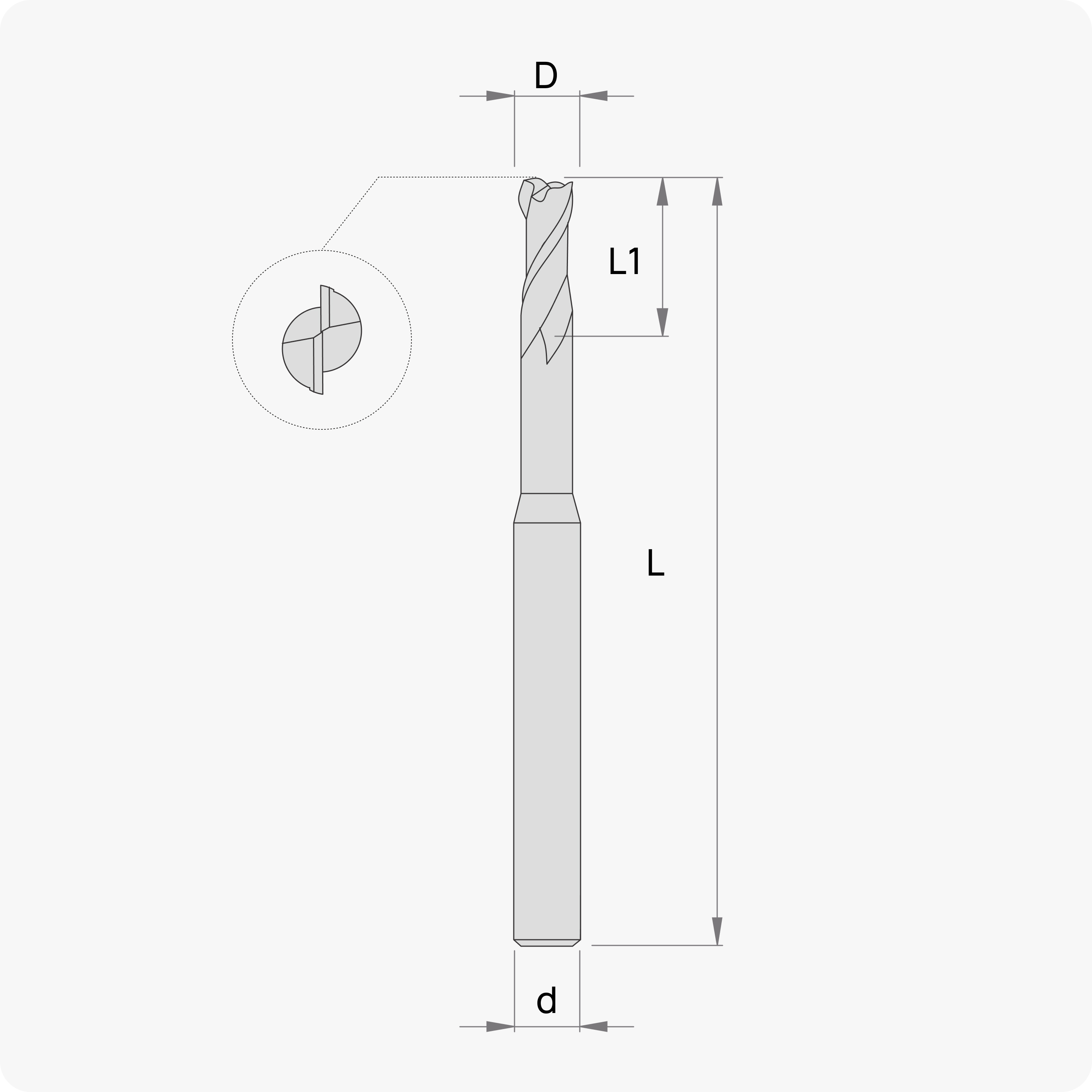 - Твердосплавная микро-фреза с покрытием, без радиуса при вершине