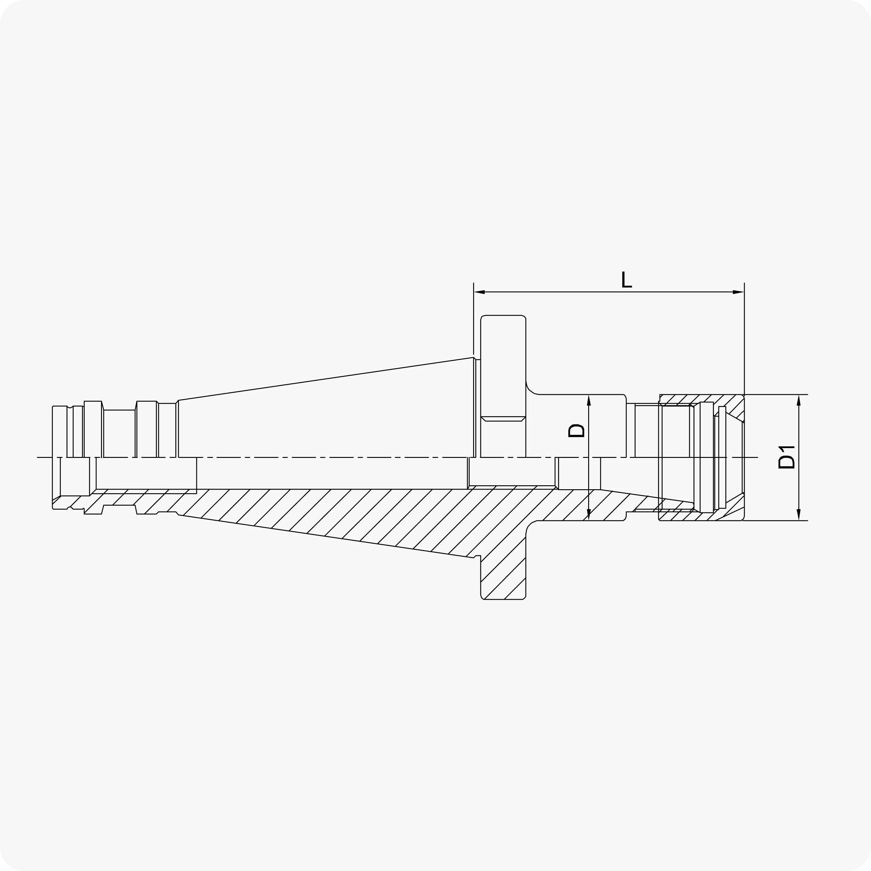 | Тип конуса | Тип гайки | Тип цанги | D | D1 | L | Зажимаемый размер |