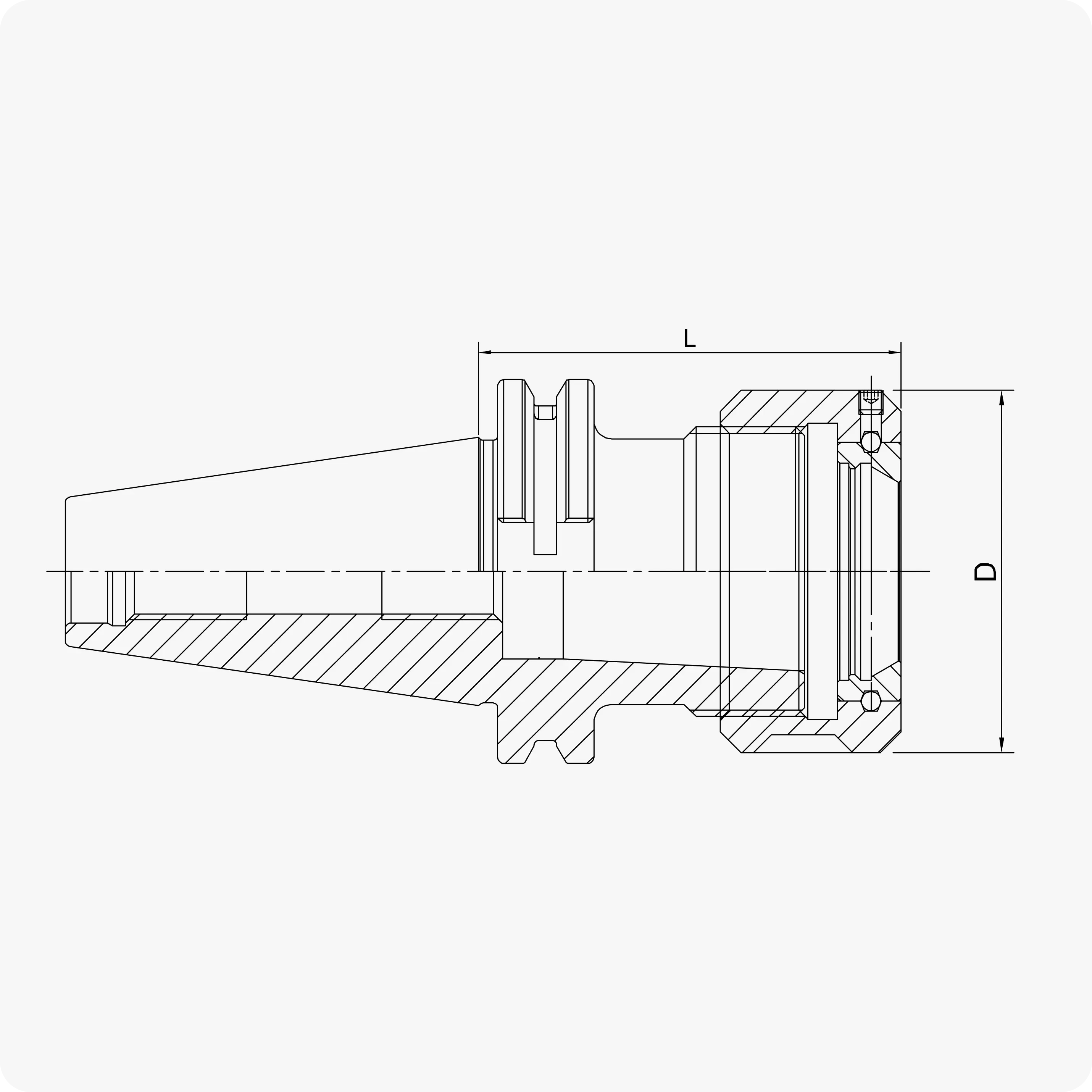 | Тип конуса | Тип гайки | Тип цанги | D | D1 | L | Зажимаемый размер |