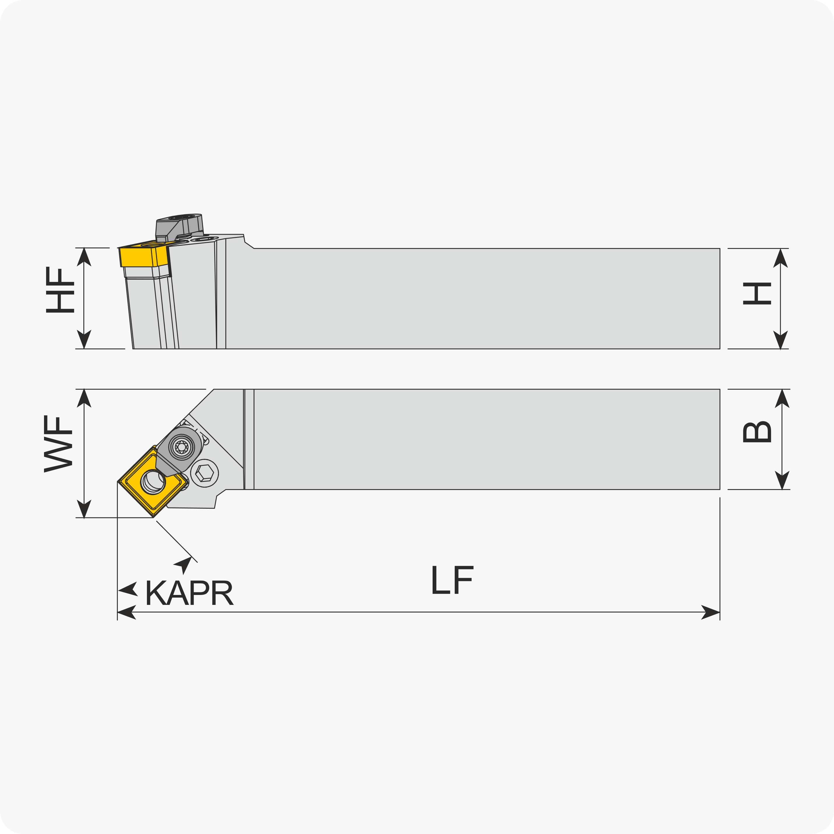 Державки наружные под квадрат 90°, угол в плане 45°, точение и подрезка, без подачи СОЖ, с прижимным\винтовым креплением