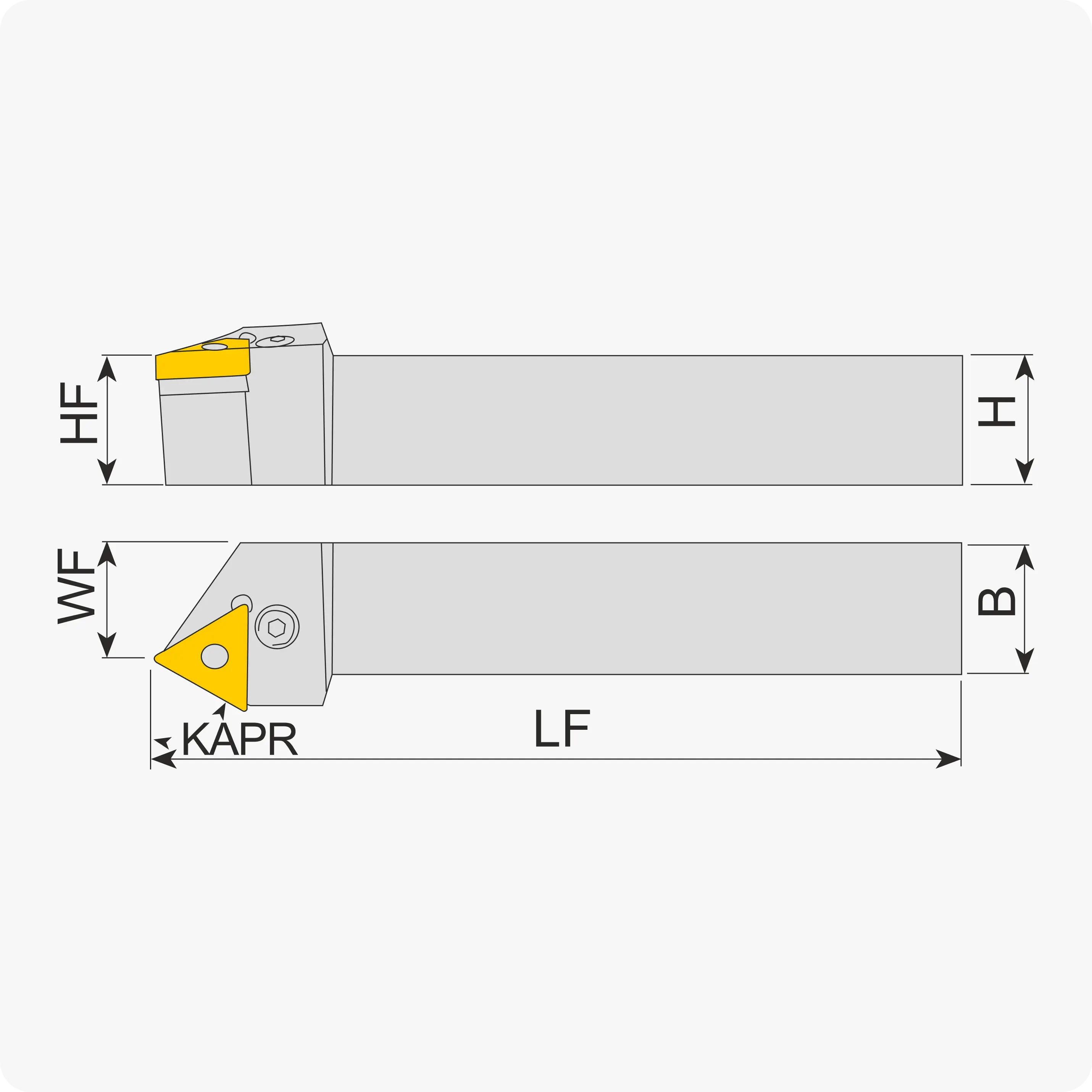 | Угол в плане, ° | B | H | LH | WF | Подбор державки/пластины | LF | Материал |
