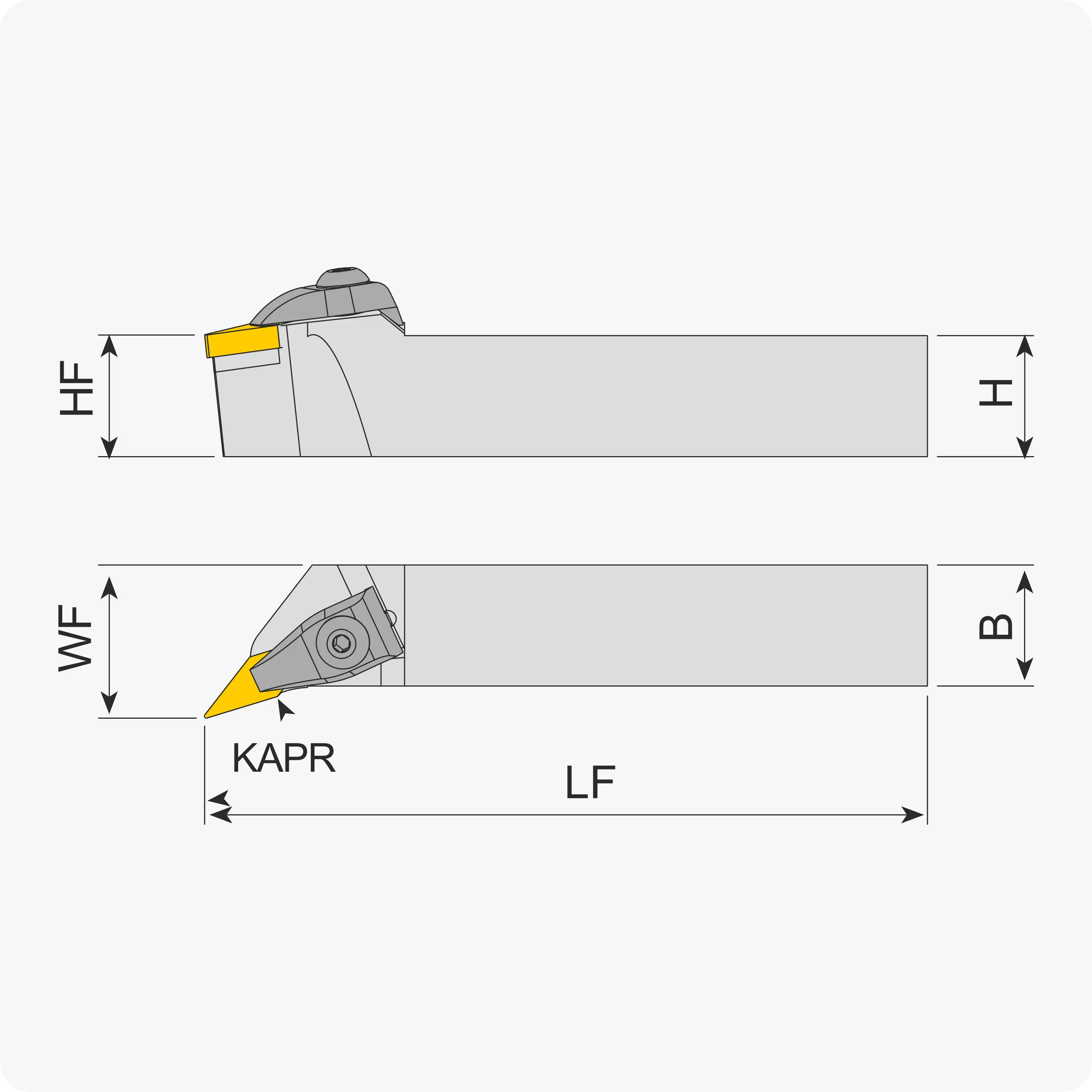 | Угол в плане, ° | B | H | LH | WF | Подбор державки/пластины | LF | Материал |