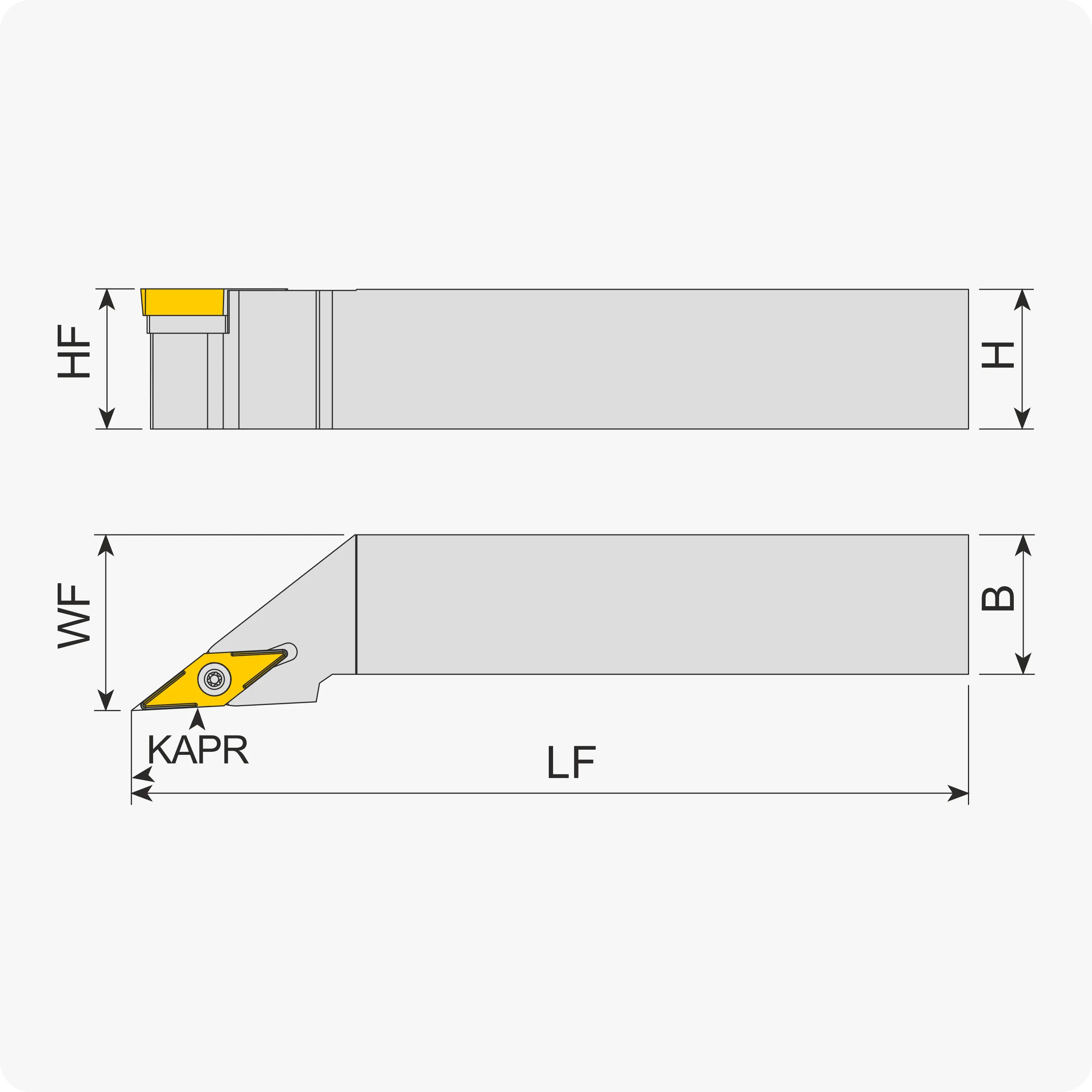 | Угол в плане, ° | B | H | LH | WF | Подбор державки/пластины | LF | Материал |