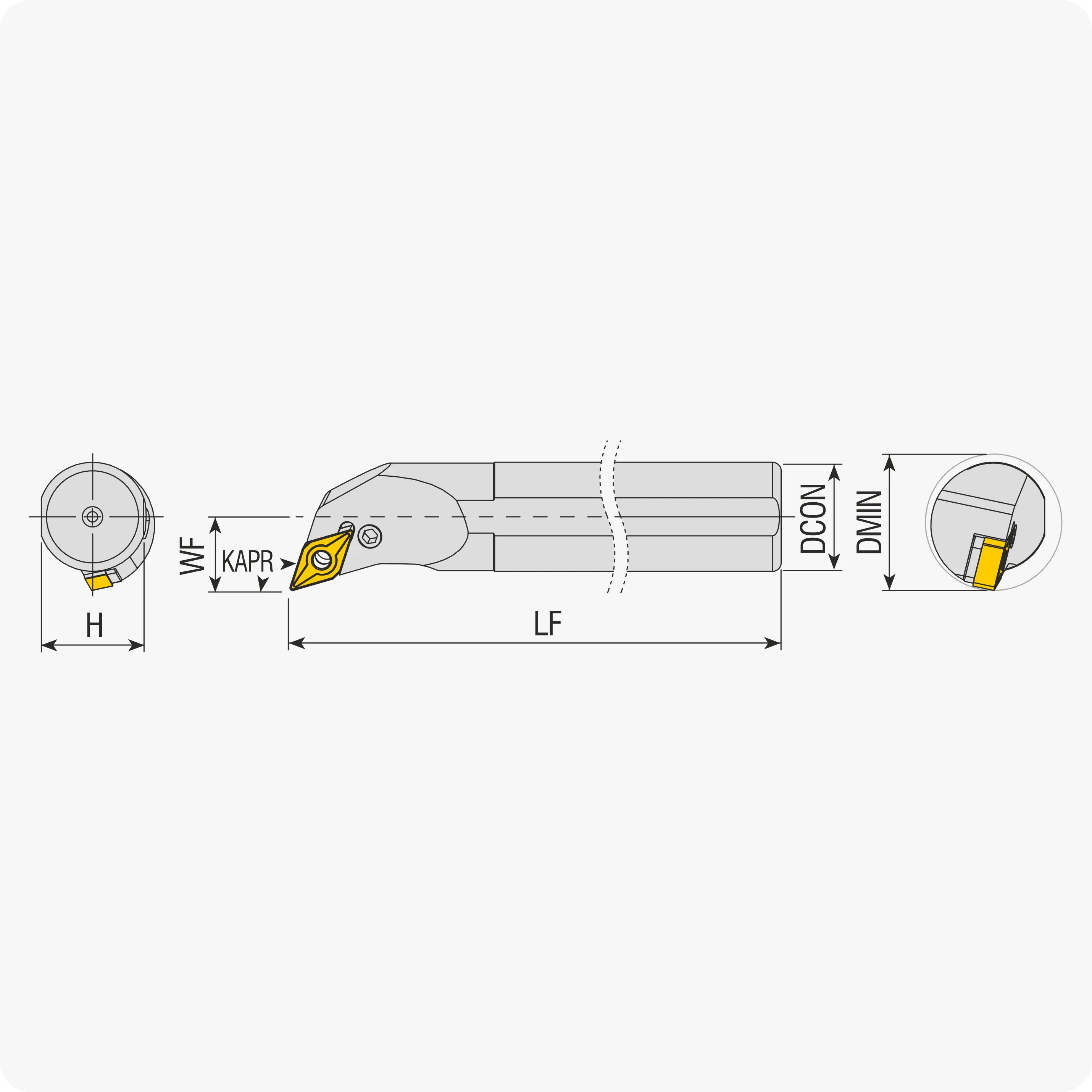 | Угол в плане, ° | D min. | D посадочный | Подбор державки/пластины | LF | Материал |