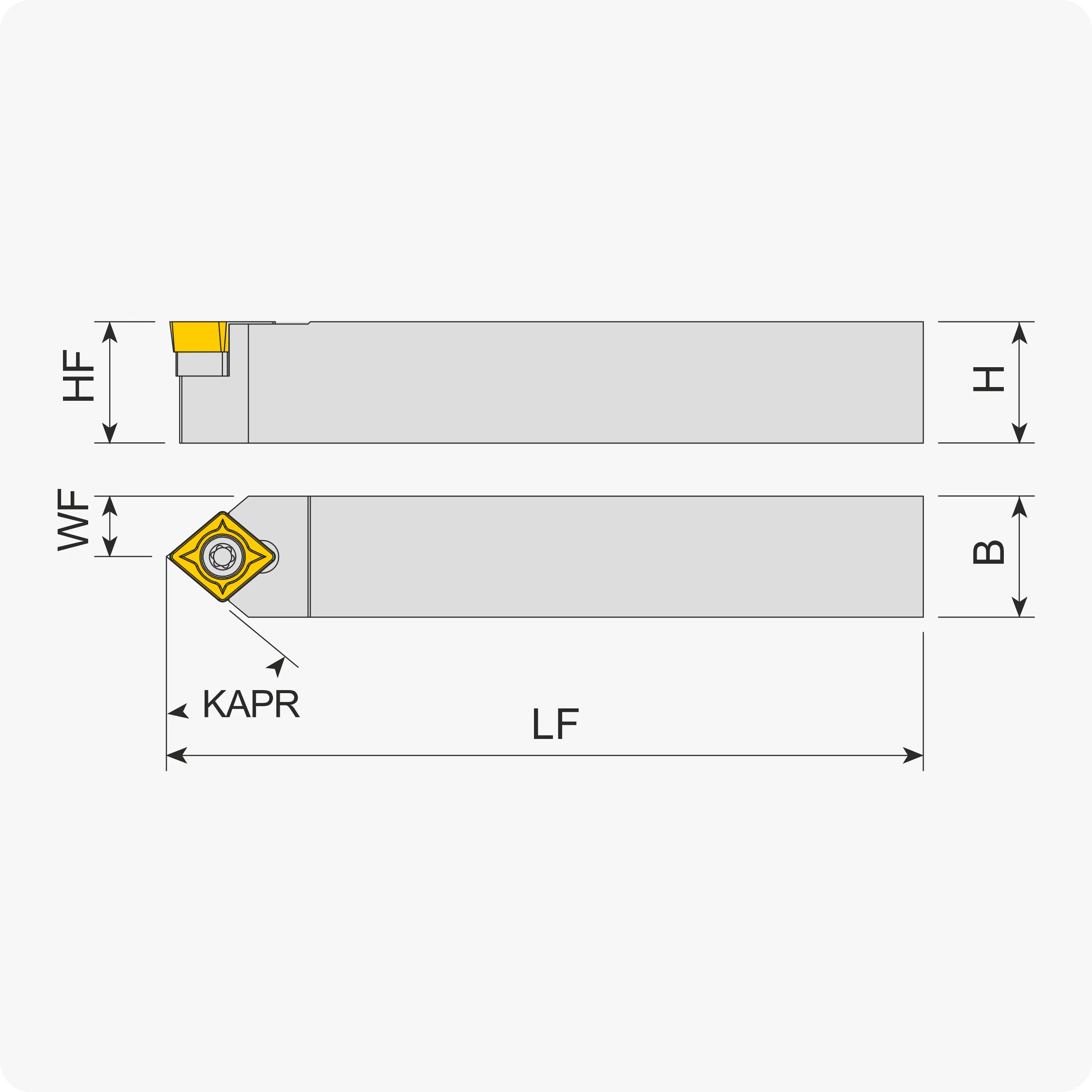 | Угол в плане, ° | B | H | LH | WF | Подбор державки/пластины | LF | Материал |