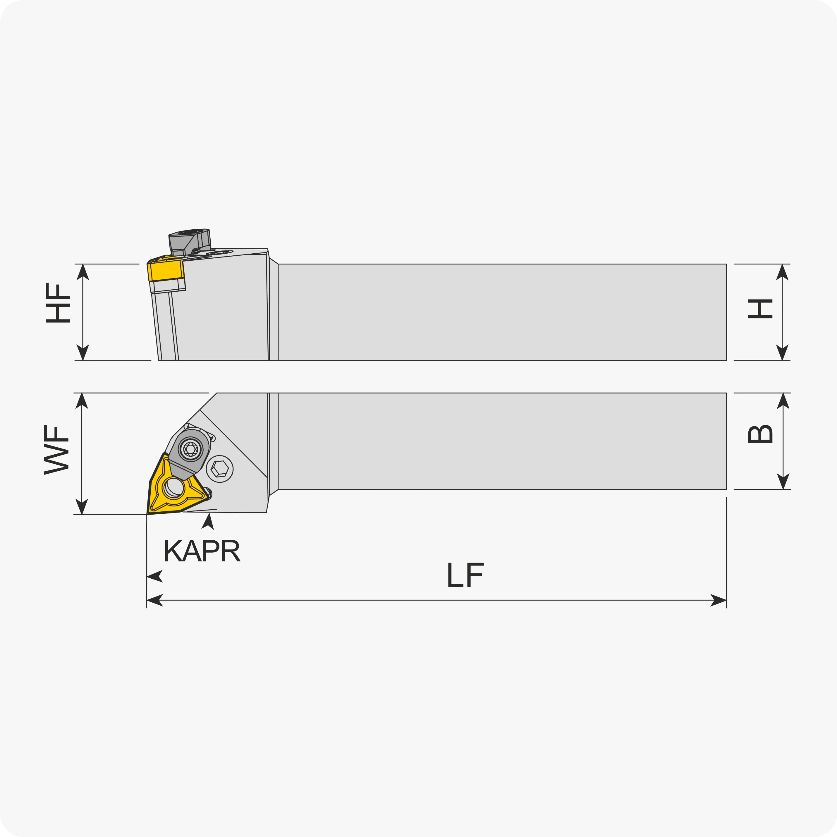 | Угол в плане, ° | B | H | LH | WF | Подбор державки/пластины | LF | Материал |