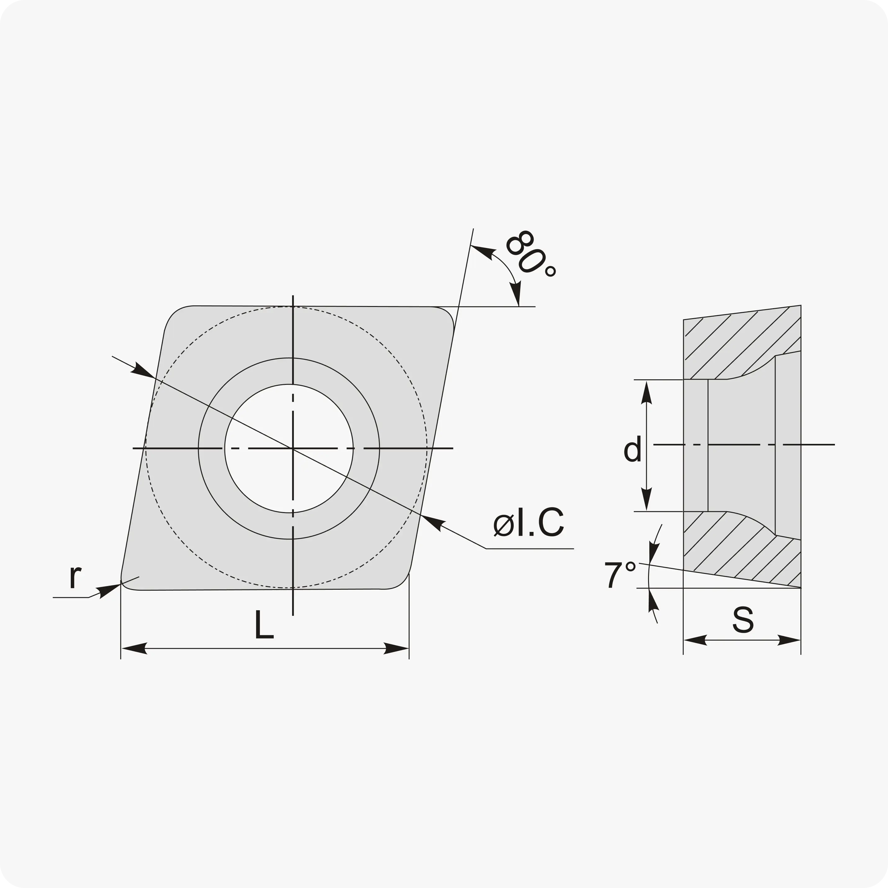 | Форма пластины | Ромб 80° (C) |