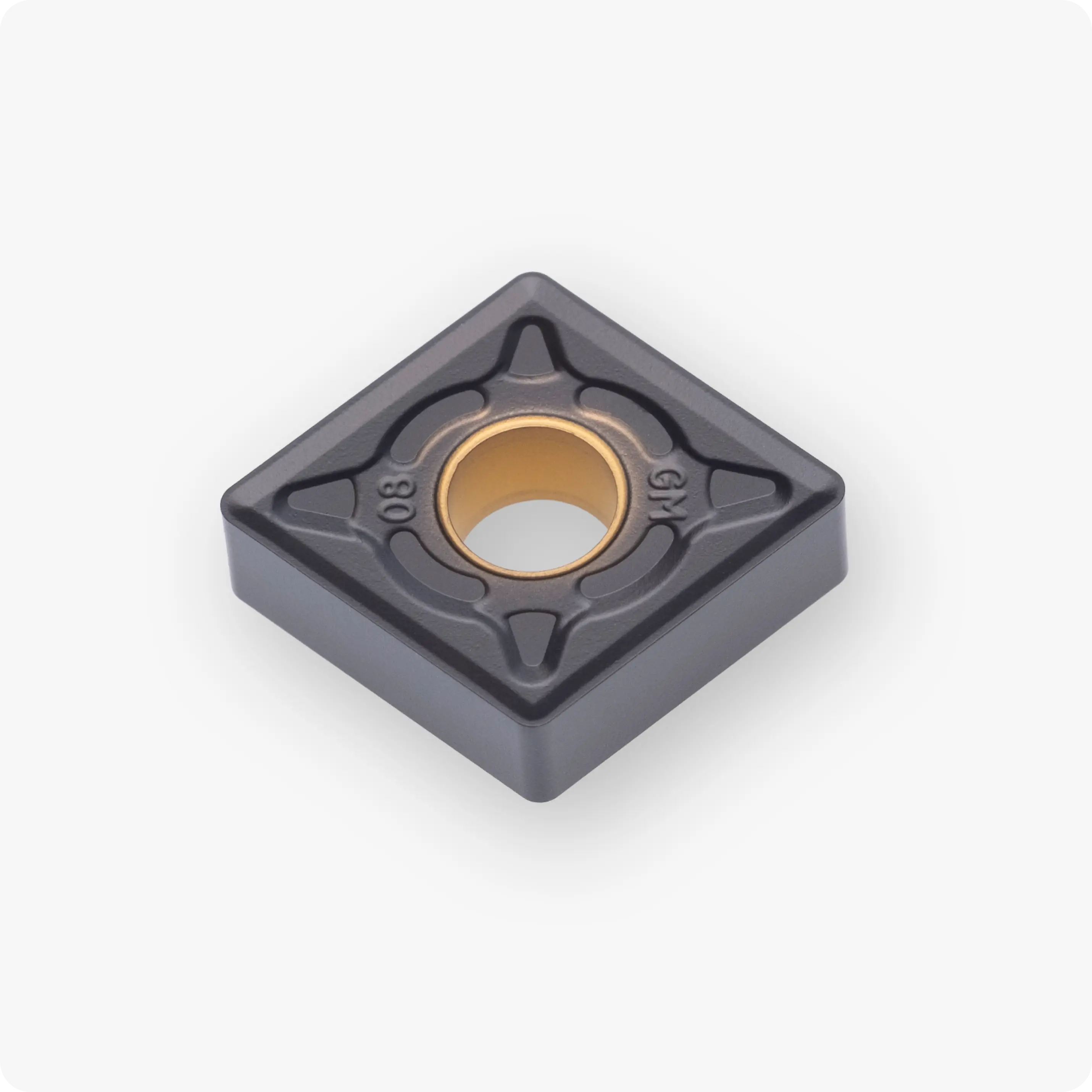 Твердосплавная пластина CNMG120408-GM TX4225 от бренда NRG Tools — это высокопрочное решение для получистовой и черновой токарной обработки сталей. Благодаря форме ромба 80° и негативной геометрии (без заднего угла), данная пластина обладает повышенной жесткостью режущей кромки и является двусторонней, что обеспечивает 8 рабочих режущих кромок (при использовании соответствующих державок) и максимальную экономическую эффективность.