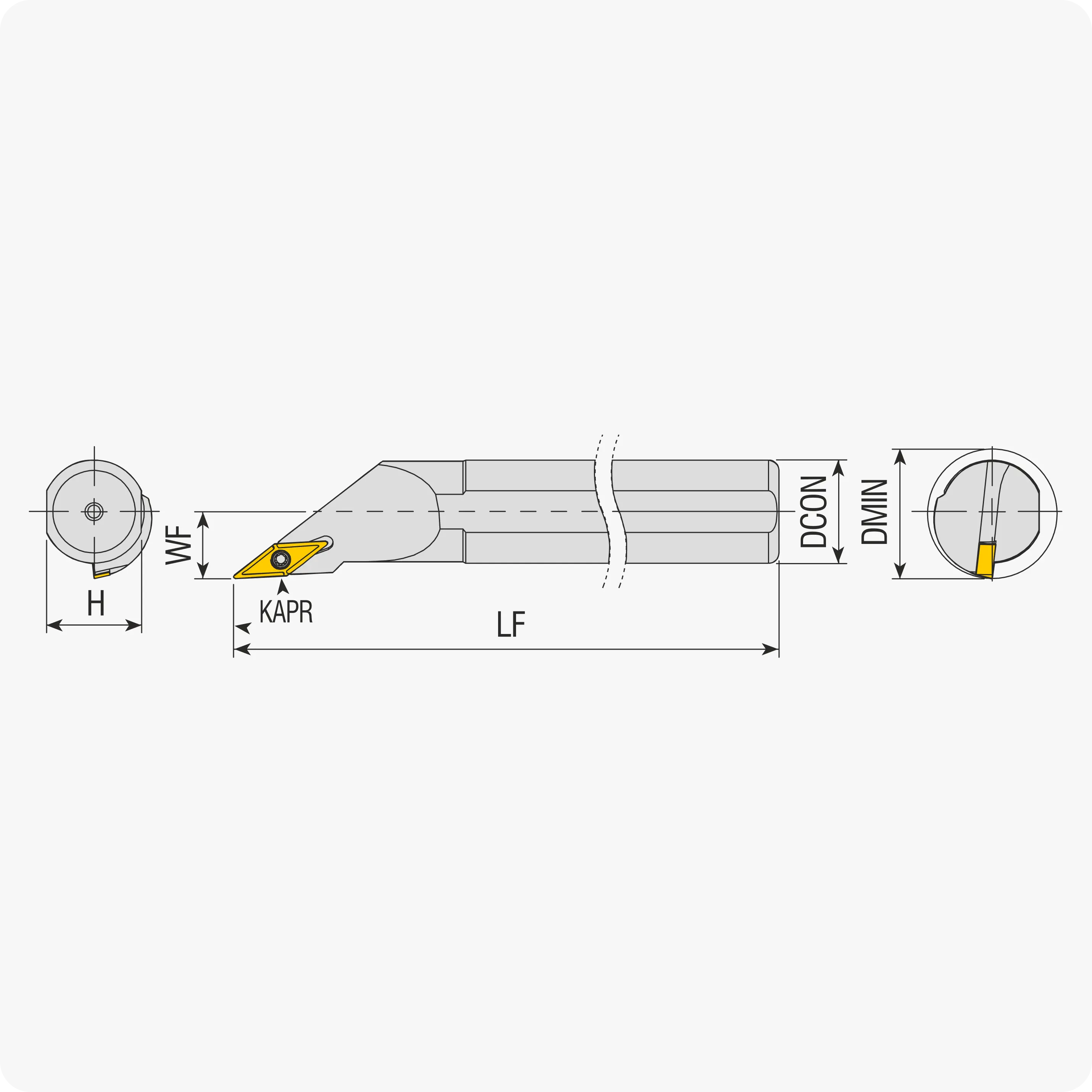 | Угол в плане, ° | D min. | D посадочный | Подбор державки/пластины | LF | Материал |