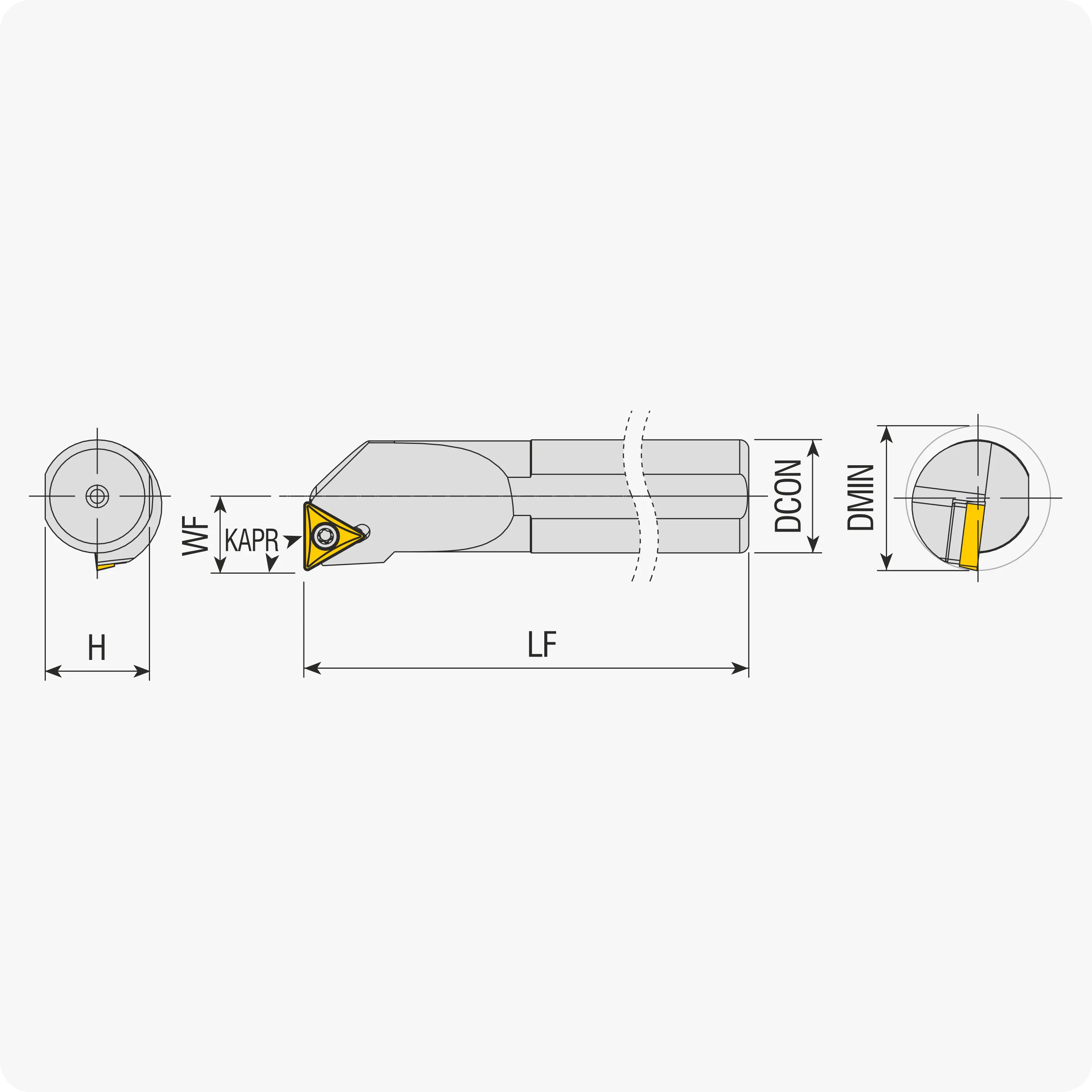 | Угол в плане, ° | D min. | D посадочный | Подбор державки/пластины | LF | Материал |